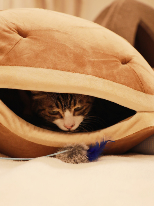 猫じゃらしを持参するとどら焼きに入り込む ハンターモードのアミ姐さん。つぶしたがりのユウがどら焼きをつぶしかけてから しばらくはどら焼きに入る···