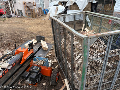 もらってきた鉄製コンテナを早速使ってみた。 まずは去年切り倒していた焚きつけ用のドロヤナギを割ってポイポイと放り込んでいく。 コンテナは高···